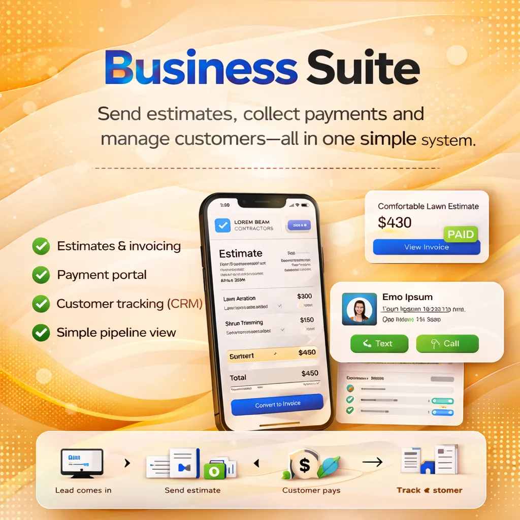Business Suite brings your estimates, invoices, payments, and customer management into one simple system—so you can move faster, stay organized, and get paid without the hassle.