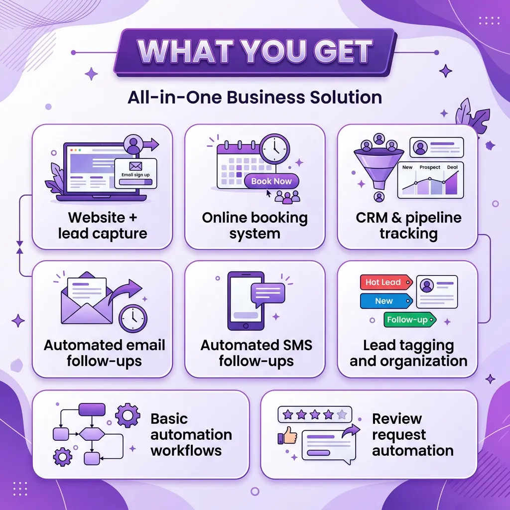Growth System handles your follow-ups and marketing. When you’re ready, upgrade to AI System to automate calls, conversations, and lead handling 24/7.